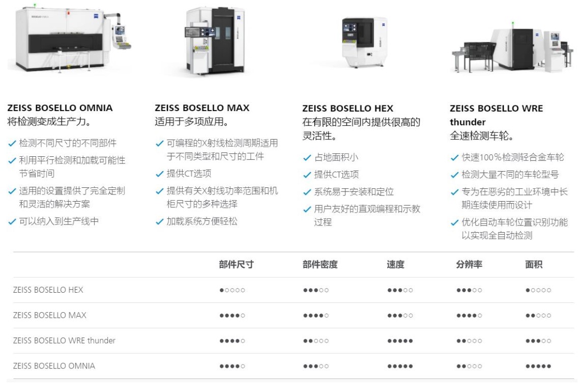 蔡司BOSELLO产品系列的X射线系统适用于多个行业。因此,可根据生产需要为系统配置不同的机柜、功率级别和探测器。